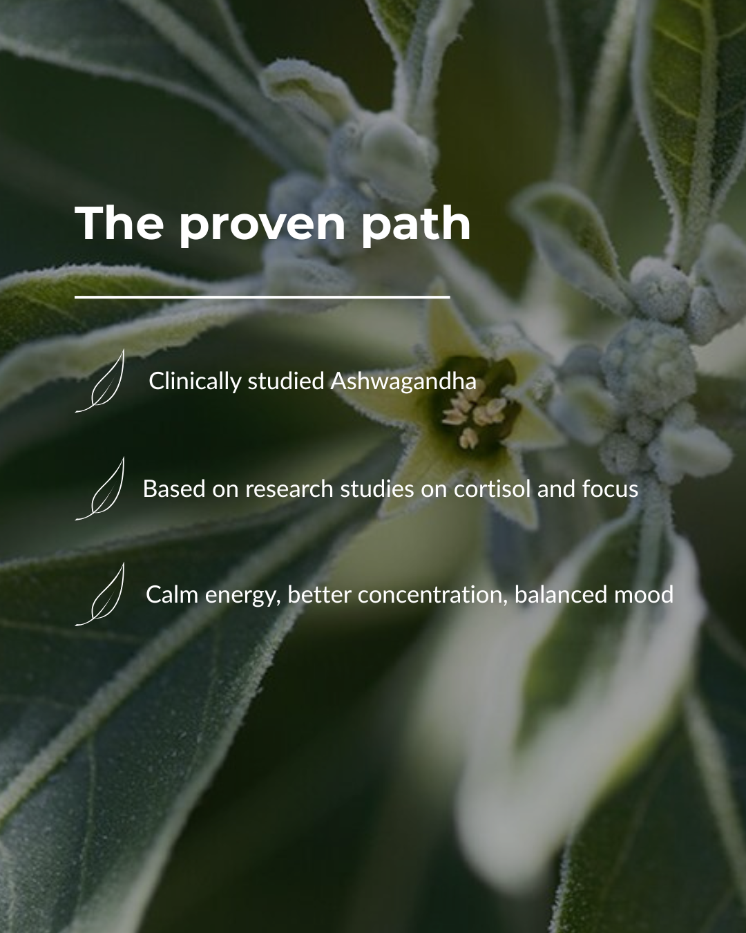 Our Ashwagandha extract is standardized for consistency and supported by clinical studies demonstrating its impact on stress reduction, focus, and performance balance.